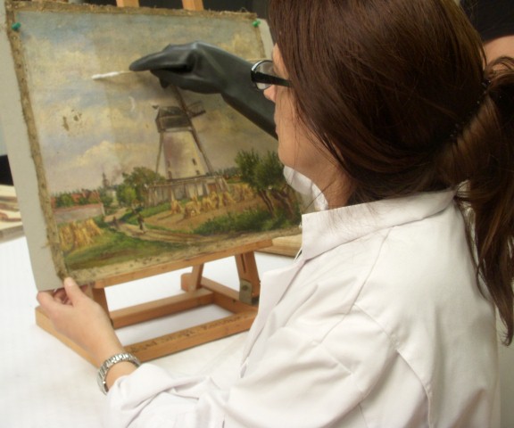 Conservatie Conserveren betekent dat het schilderij behandeld wordt om de bestaande toestand te houden (verwijderen van vuil, fixeren van aanwezige losse dellen ezv) en om originele leesbaarheid van het schilderijen te herstellen.